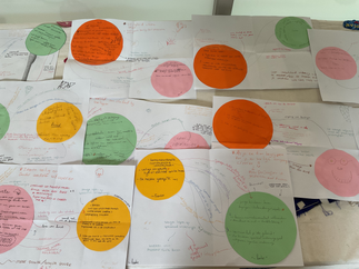Voor de pauze waren we vooral aan het divergeren: alle ideeën op tafel leggen, en associeren. Na de pauze draaide het om keuzes maken en terugbrengen naar de kern (convergerem. Uiteindelijk liep ik de les uit met een concrete leervraag. Het voelde alsof ik iets “gekookt” had waar ik echt verder mee kan.